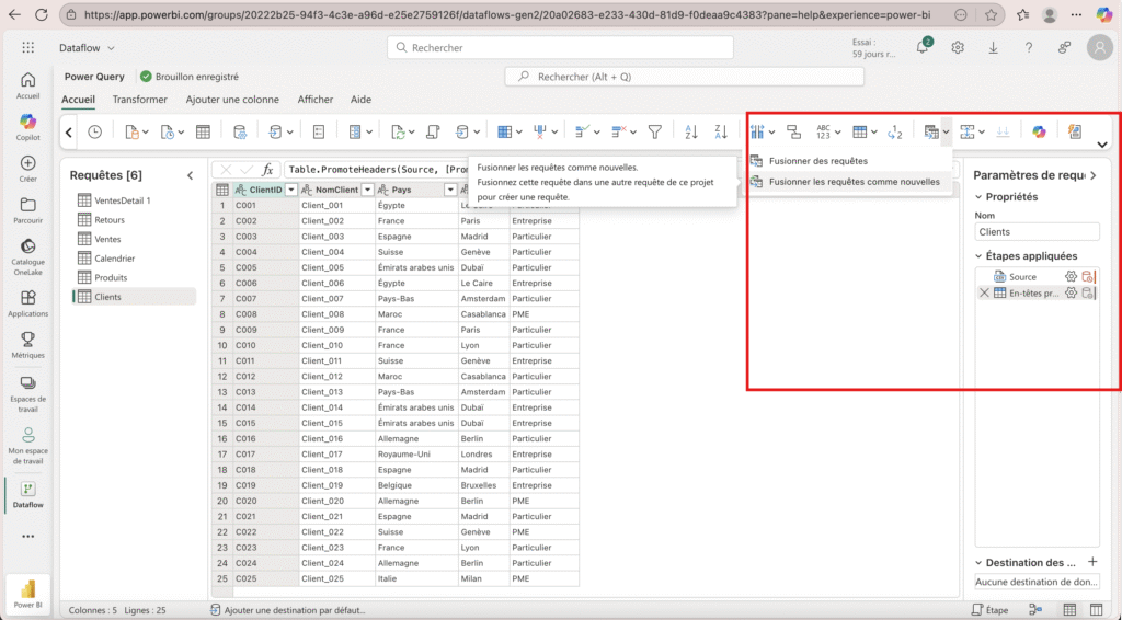 df_Ventes, df_Clients).Souhaites-tu aller plus loin avec les dataflows dans Power BI ?
