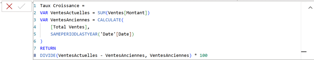 Objectif : calculer la croissance par rapport à l’année précédente en rendant le code clair grâce aux variables VAR.