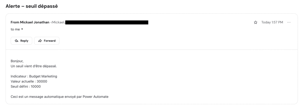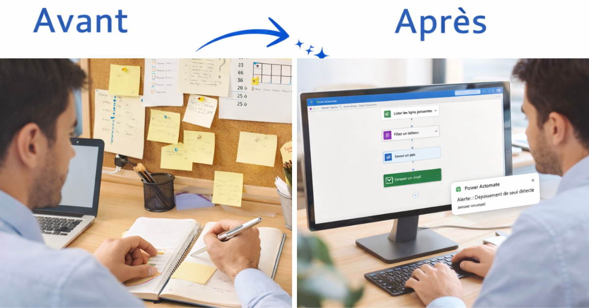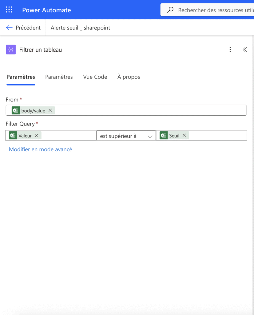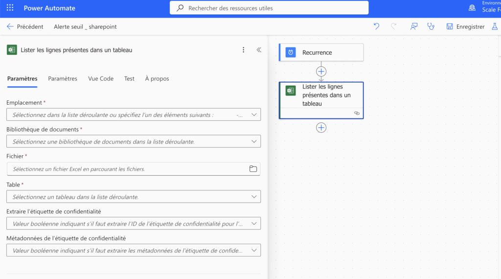 Chaque jour, Power Automate va ouvrir un fichier Excel stocké sur SharePoint, vérifier si une valeur dépasse un seuil, et envoyer un email d’alerte si c’est le cas.