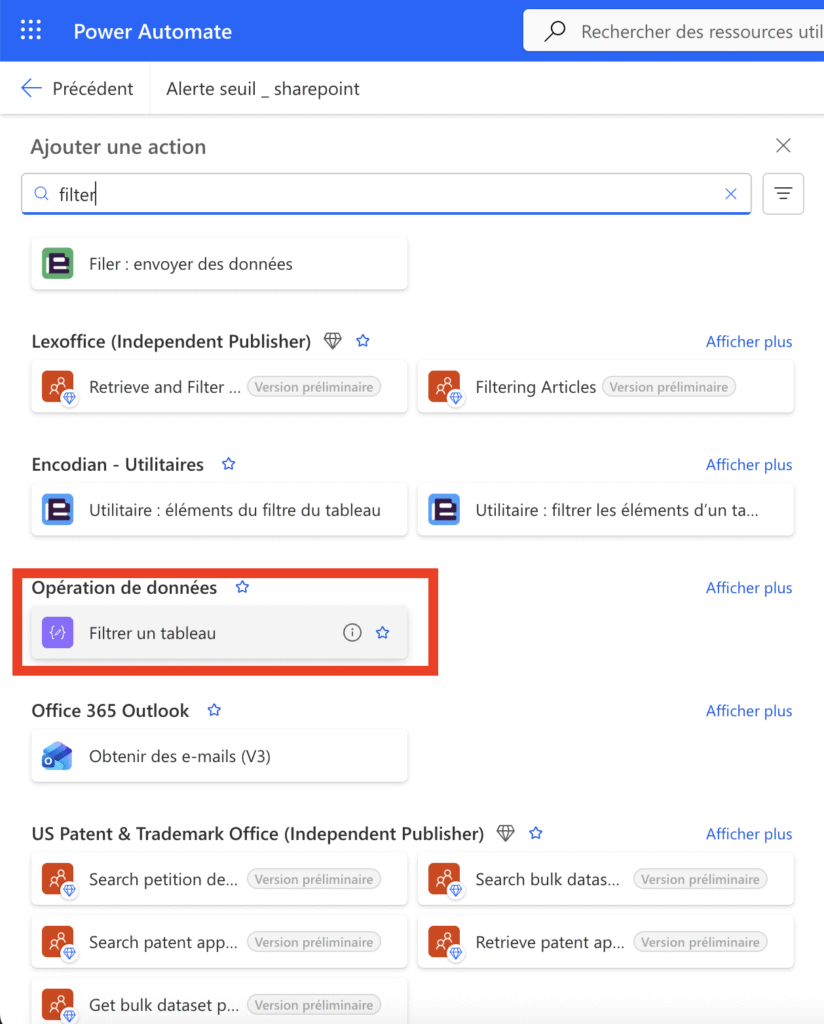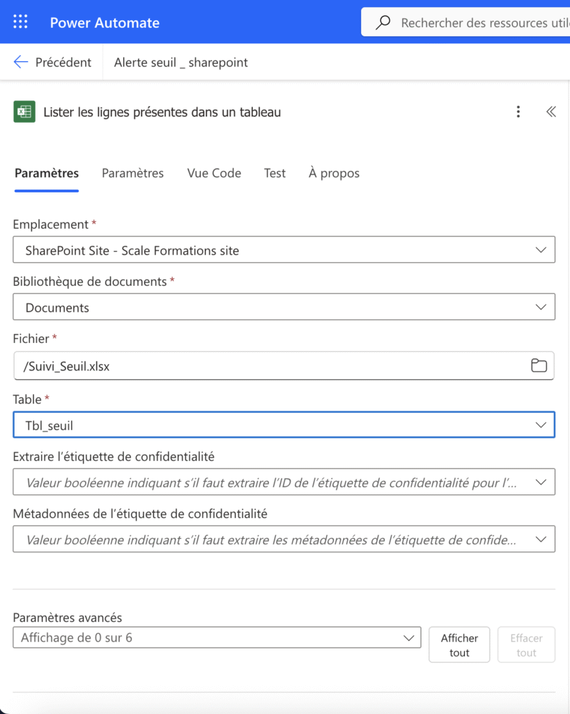 Suivi_Seuil.xlsxtblSeuil👉 À ce stade, Power Automate lit toutes les lignes de ton tableau.